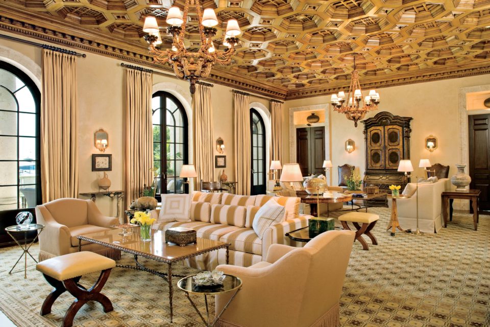 “The Beeldsnijder and Acanthus teams used painstaking finishing methods developed 200 years ago to give the walnut interior a textured and tactile look and feel. The area is aglow with meticulously carved French walnut polished in a 14-step process to satisfy the clients’ directive to imbue a very old-world charm and artisanal feel.”